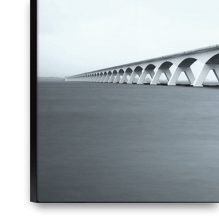 Bridge into nowhere in black and white. Zeelandbrug over the Oosterschelde connecting Noord-Beveland to Schouwen-Duiveland. In the distance Zierikzee at the end of the 5 kilometer long bridge.