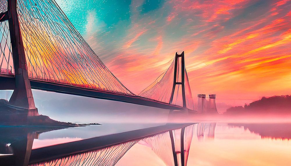 Buy this landscape artwork Bridge with sunset by Mustafa Kurnaz on canvas, ArtFrame, poster and wallpaper, printed on demand in high quality.