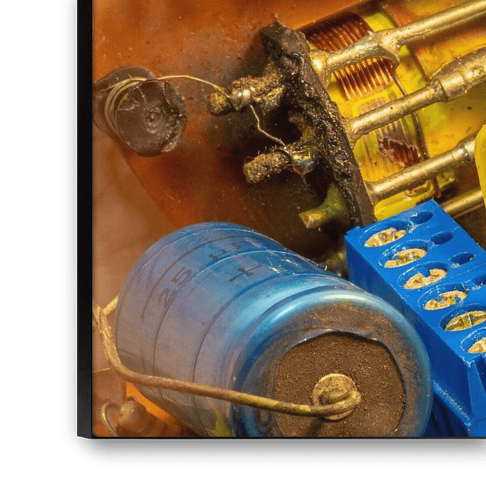 Here, every connection is like a nerve in a technological brain-inspiring in its complexity. Perfect for in office spaces of innovative companies that are not afraid of disruption. This work forms a visual anchor point. The image invites us to look further and think: where is the solution hidden in the chaos and how can we short-circuit it?