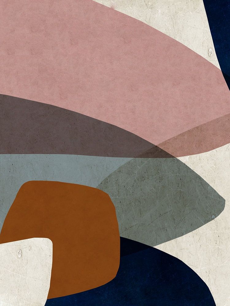 Minimalist composition with geometric shapes and subtle shades of pink, dark blue and beige.