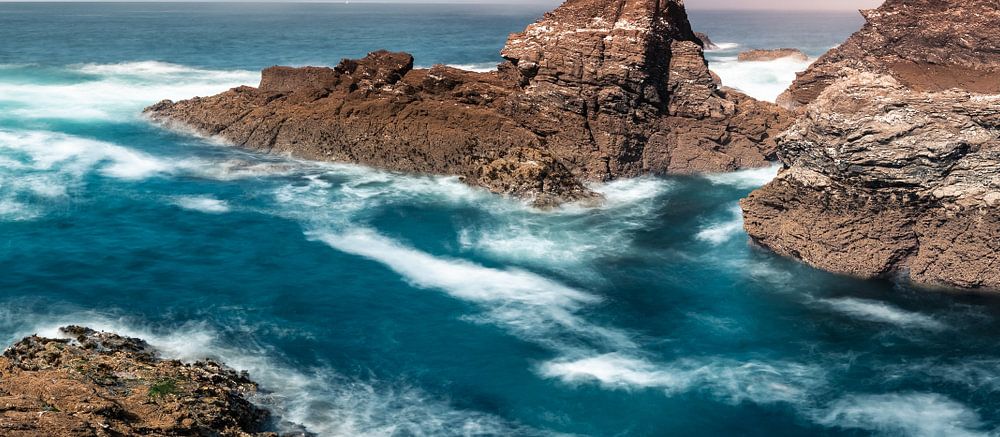 Panoramic landscape of Belle ile en mer, Morbihan, Brittany, France. Belle-île-en-mer is known for rugged cliffs and wild waves.