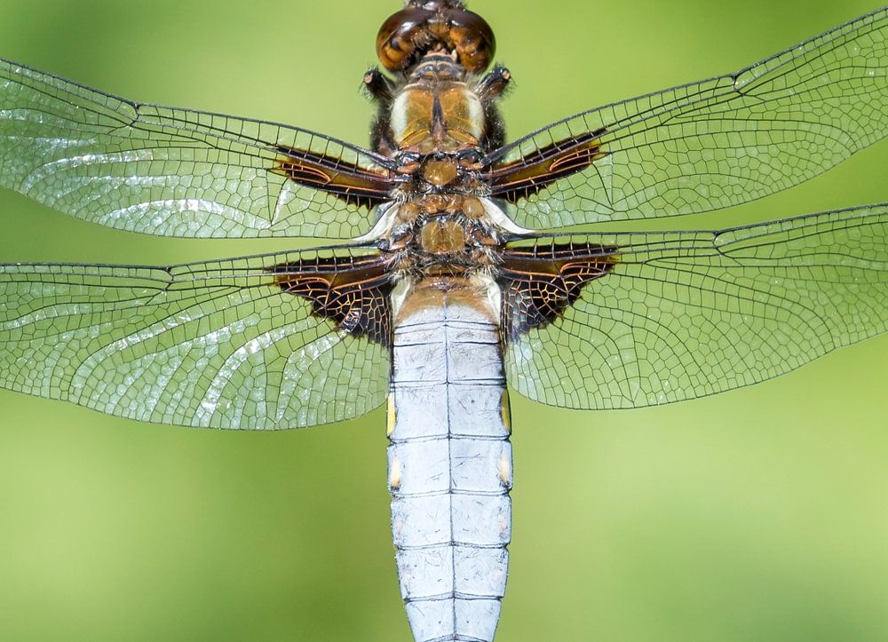 The Broad-bodied Darter spreads its wings. The photo is taken on the Brunssummerheide in Limburg in the Netherlands