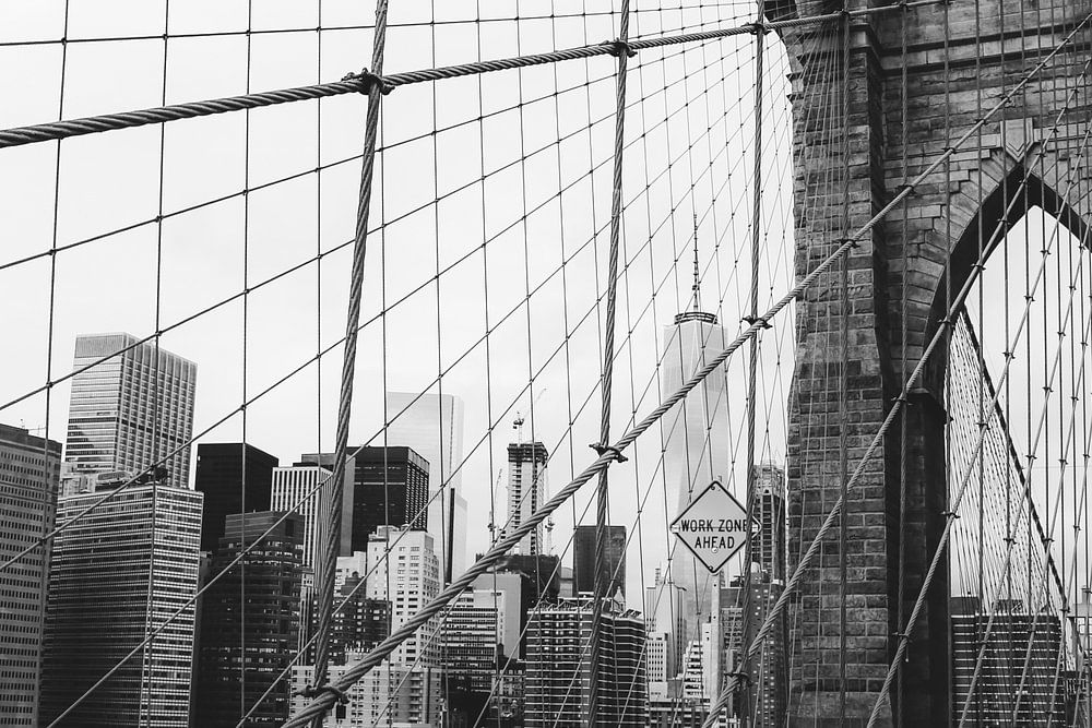 Brooklyn Bridge New York. Black and White collection. The bridge was under construction, but that is also what I like about the image.
