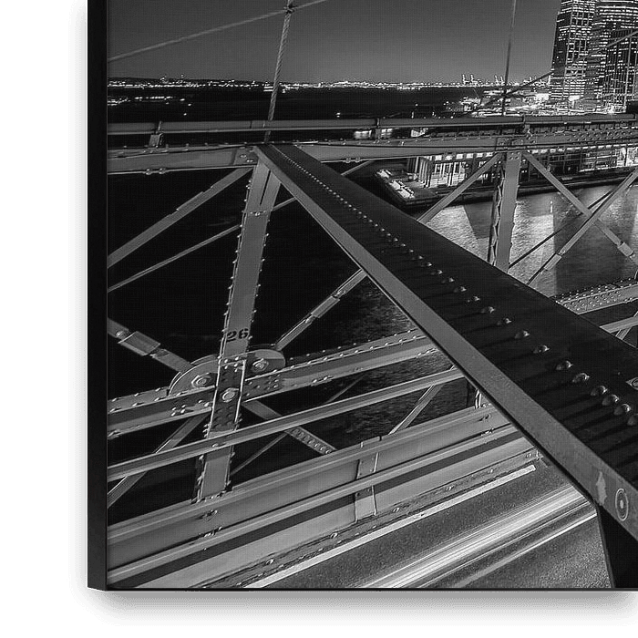 Buy this black and white artwork Brooklyn bridge lights by Stefan Schilbe on canvas, ArtFrame, poster and wallpaper, printed on demand in high quality.