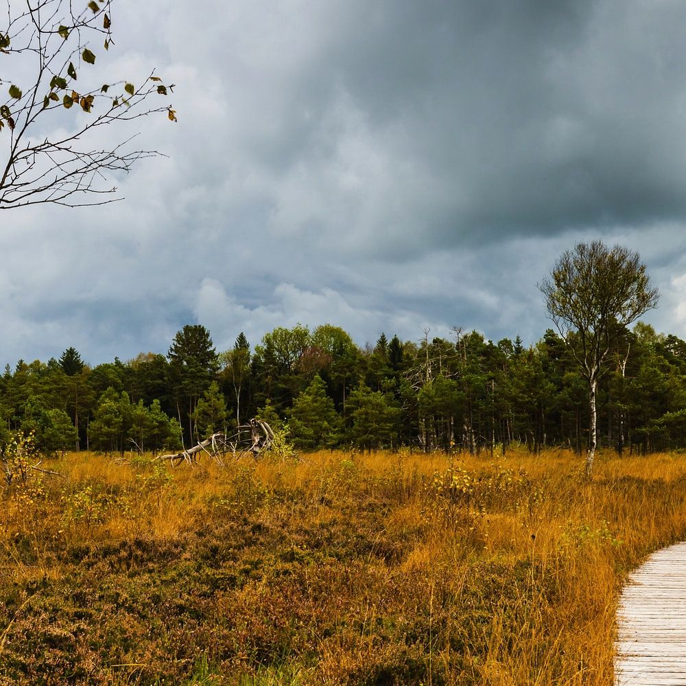 A wooden walkway, kissed by time and blessed by the spirits of the forest, meanders gently through the colourful painting of nature. The broom heather and bell heather, a symphonic composition of purple and magenta that adorns the ground like a soft feather bed of flowers, rise up under the gentle step of the hiker. The slender birch trees rise proudly between the seas of fragrant flowers, their white trunks like pillars touching the sky.