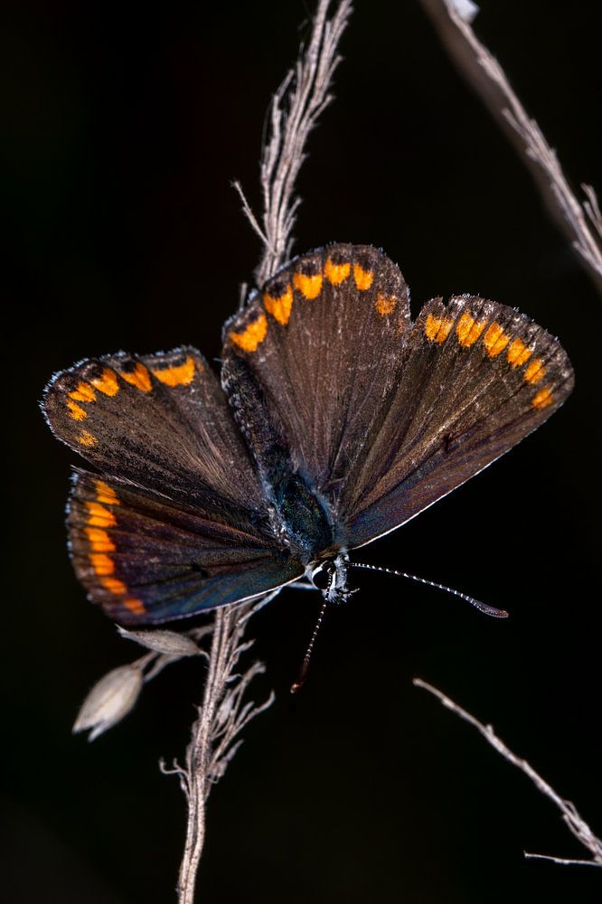 A subtle beauty of our nature: the brown blue, a butterfly often overlooked among the more conspicuous species. With its warm brown wings decorated with a graceful orange border, it shows that simplicity can also be beautiful. Photographed in the Veluwe, in its natural habitat, on a fragile stalk in the field.
