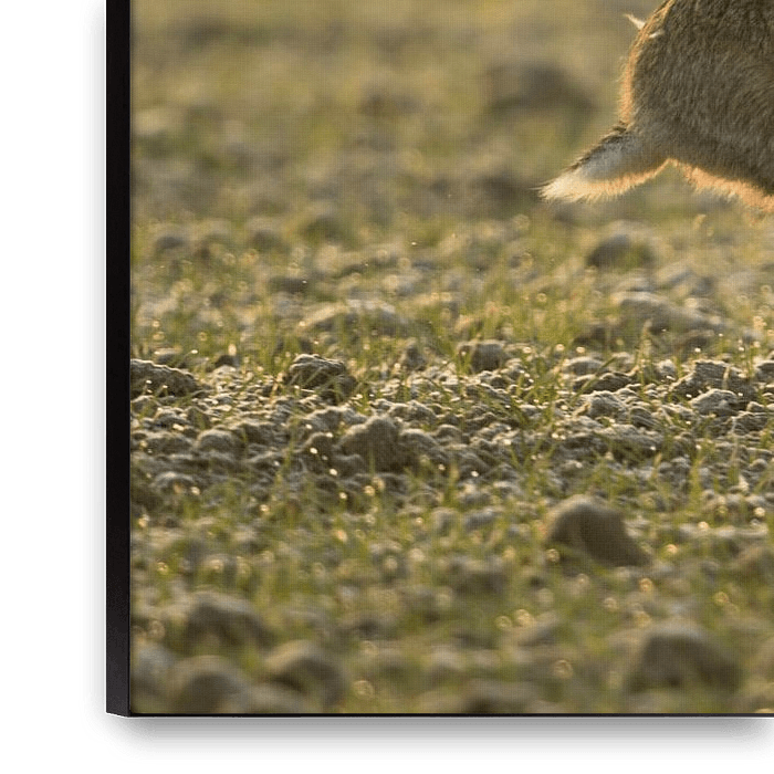 Brown Hare / European Hare ( Lepus europaeus ), early morning mood, nice backlit, running over field, side view, wildlife, Europe.