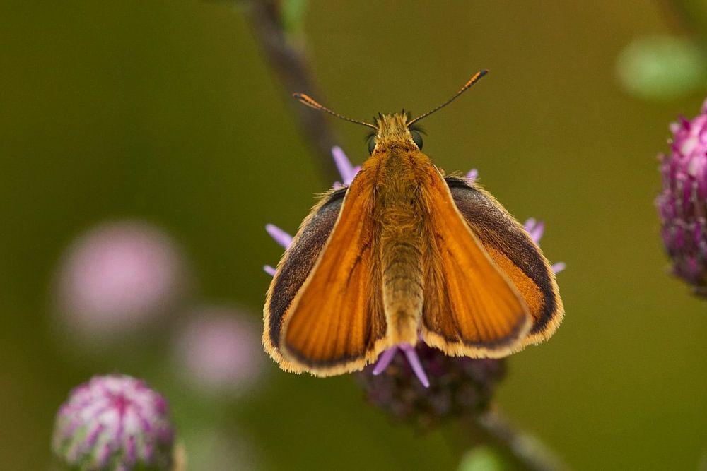 Buy this flower art Brown columbine butterfly on a thistle by Karin Jähne on canvas, ArtFrame, poster and wallpaper, printed on demand in high quality.