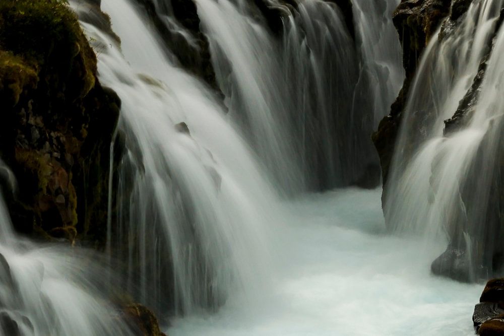 My favourite waterfall in Iceland. This waterfall can be seen in the distance. Many take a photo of it all, with the swirling river in the foreground. Zooming in on this section, with an adjusted shutter speed, it turns rugged Iceland into a lovely fairytale world.