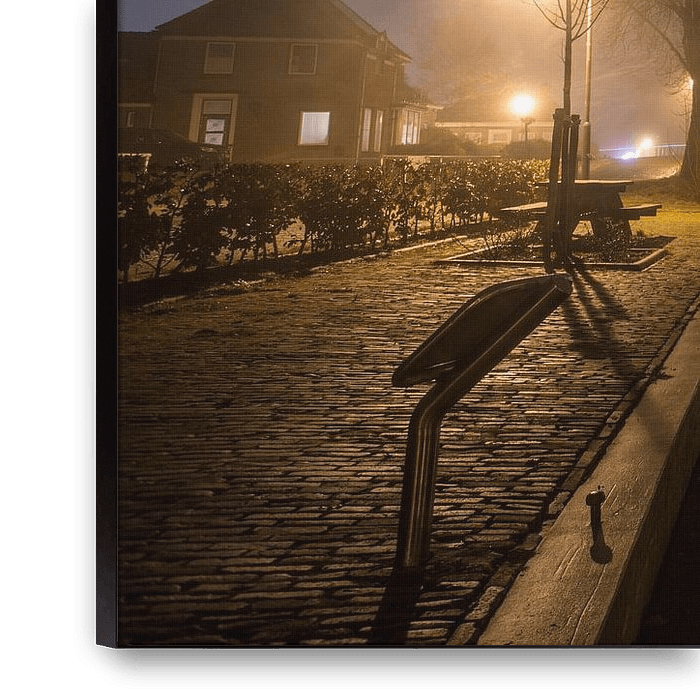 Buy this modern artwork Brug in de mist over kanaal by Maurice Hamming on canvas, ArtFrame, poster and wallpaper, printed on demand in high quality.