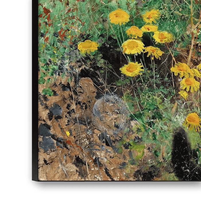 Buy Bruno Liljefors,Cat on a flowery meadow, painted in 1887 as a reproduction on canvas, ArtFrame, poster and wallpaper, printed on demand in high quality.