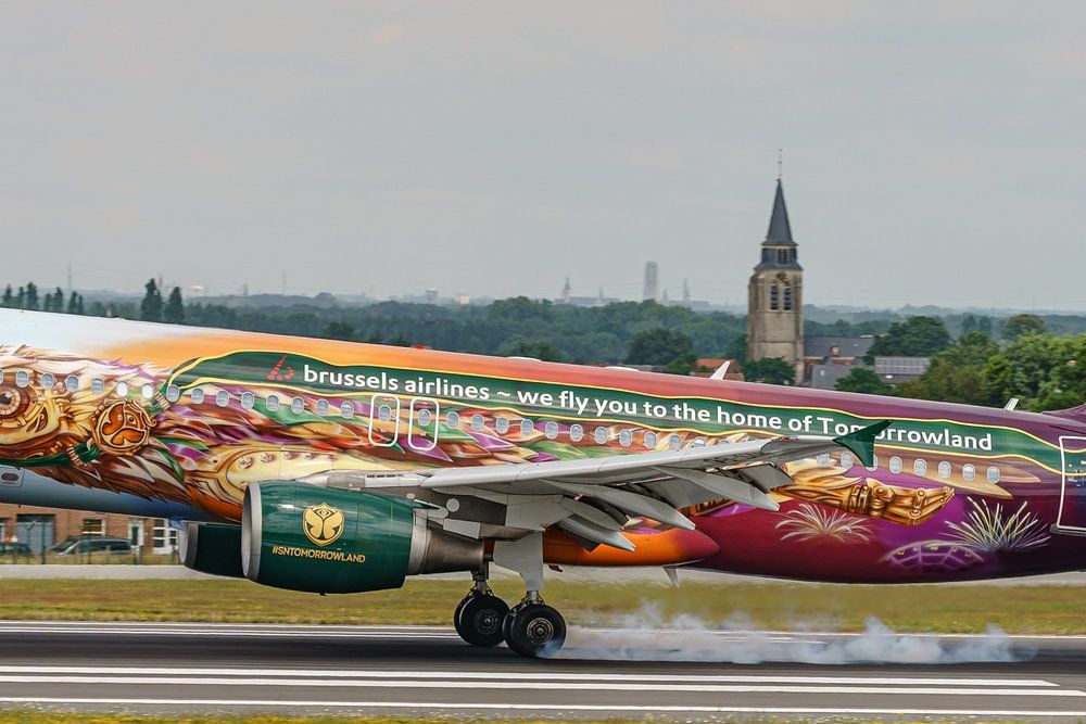 Brussels Airlines Airbus A320 with Tomorrowland livery A beautifully painted Brussels Airlines Airbus A320 in Tomorrowland livery lands here at Brussels airport. This photo was taken on July 7, 2019.