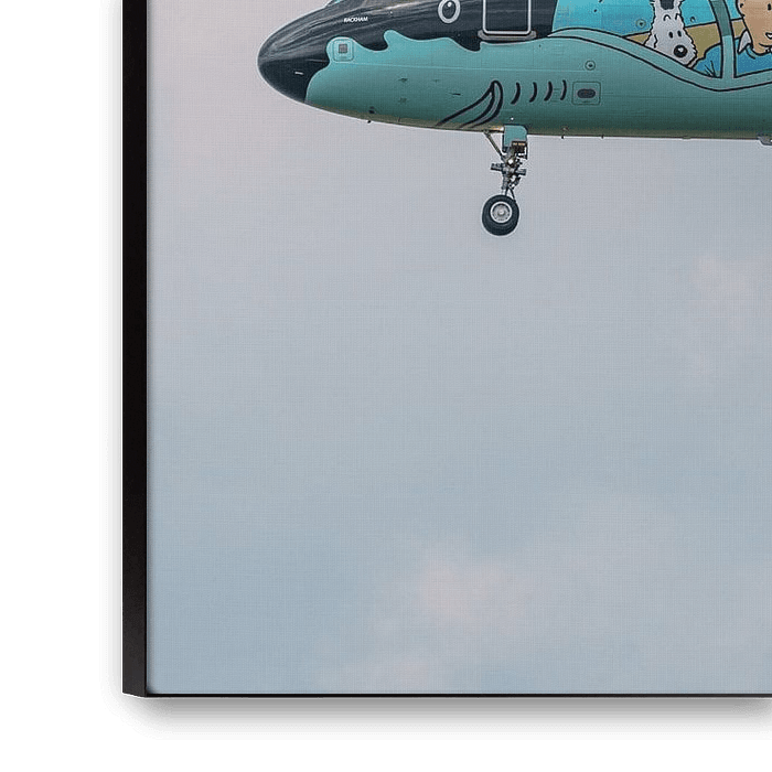 Brussels Airlines Airbus A320 with Tintin livery. registration: OO-SNB; name: Rackham. A beautifully painted Brussels Airlines Airbus A320 in the Tintin livery photographed just before landing at Brussels airport, taken on 7 July 2017.