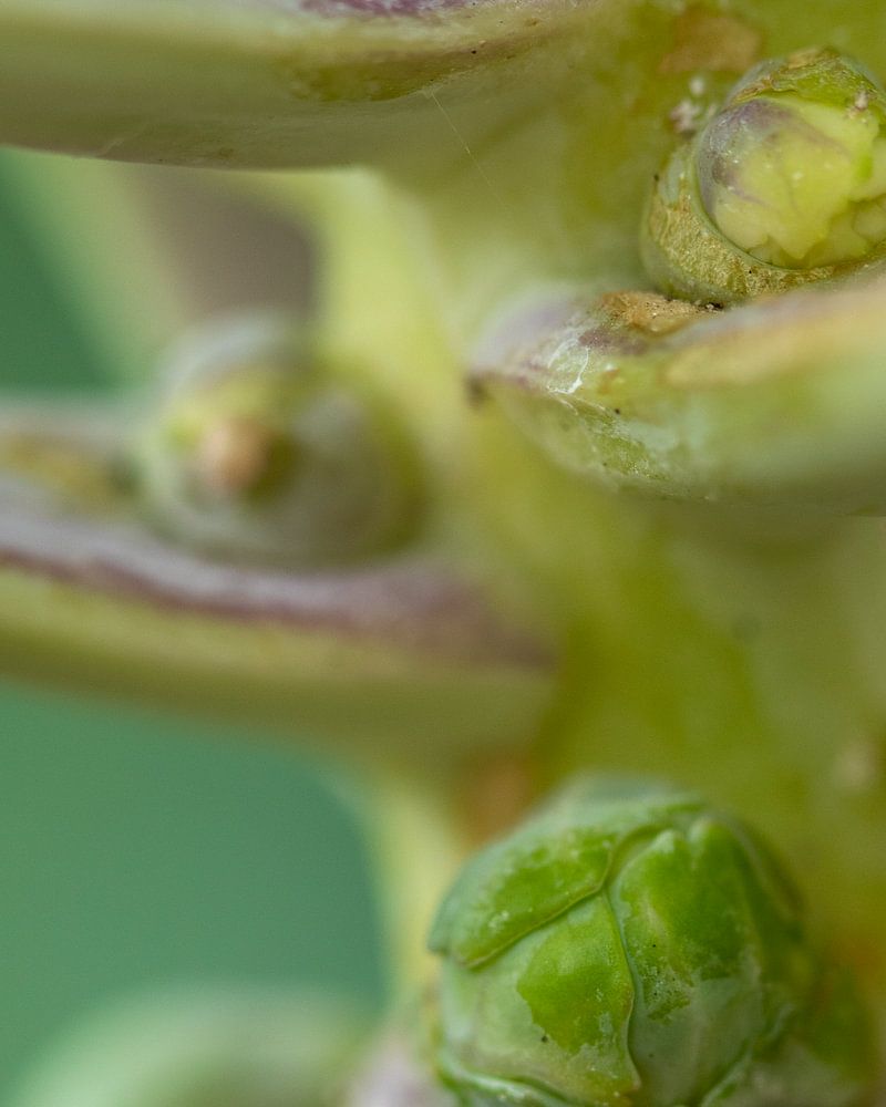 Macrophotography of vegetables is magical. Look, this is how sprouts grow. They lie on a shelf like little cakes. The purple color contrasts nicely with the green. Natural, healthy and eco-friendly.