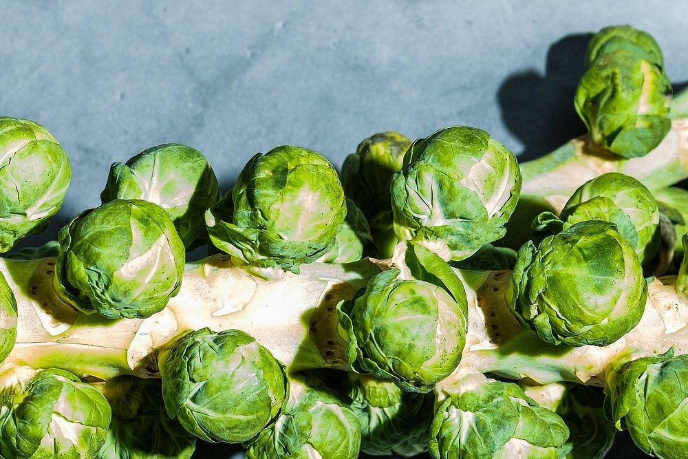 Brussels sprouts that have just been harvested look a little different than they can be found in shops.