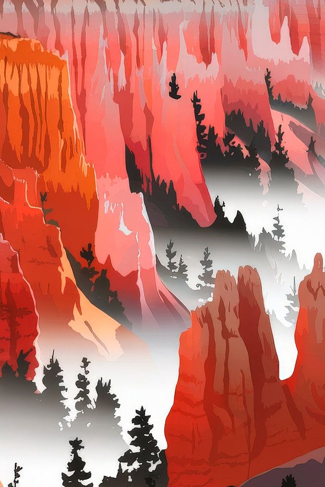A fascinating play of colours of warm red tones and deep green unfolds before your eyes. The majestic rock formations and mysterious mist give this work of art a dreamlike depth. Perfect for the living room, it draws the eye and creates an atmosphere full of a sense of adventure and closeness to nature.
