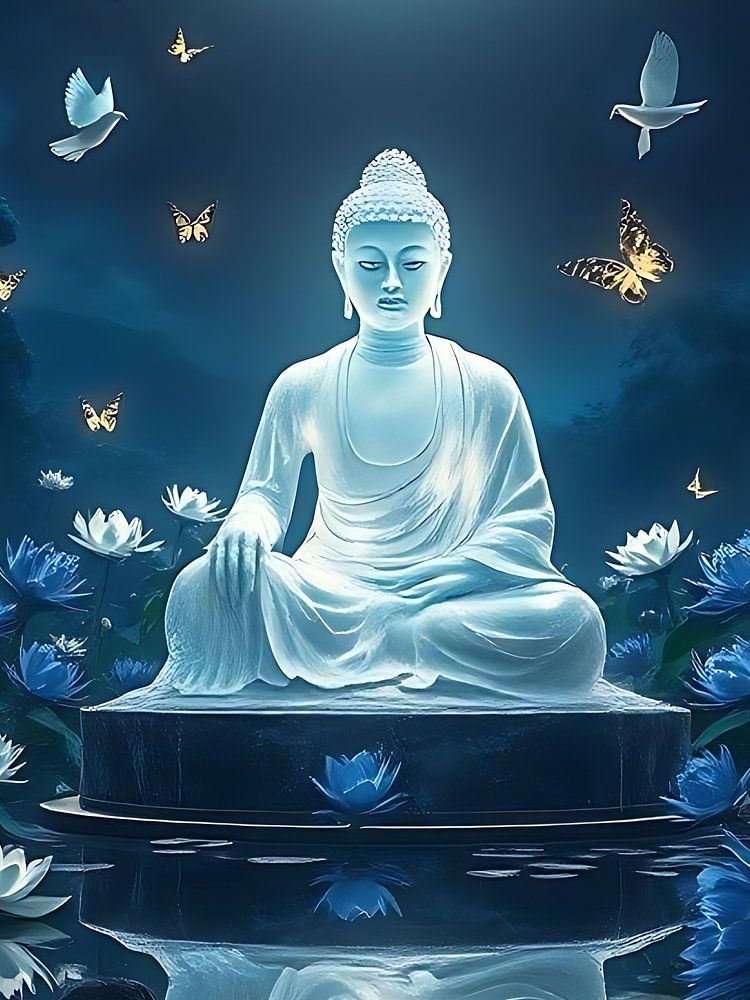 With graceful composure and closed eyes, this image of the Buddha in meditation radiates spiritual stillness and calm. Every element—from the subtle curve of the mouth to the gentle alignment of the hands—invites reflection and inner quiet. Inspired by sacred teachings, this visual evokes peace and simplicity, making it ideal for creating a meditative atmosphere in any setting. Whether in a yoga studio, peaceful corner, or personal retreat, it encourages a pause from chaos and invites deep connection. This artwork is more than just décor; it's a gentle reminder to live with intention and presence, making it perfect for those who seek visual serenity with a purpose.