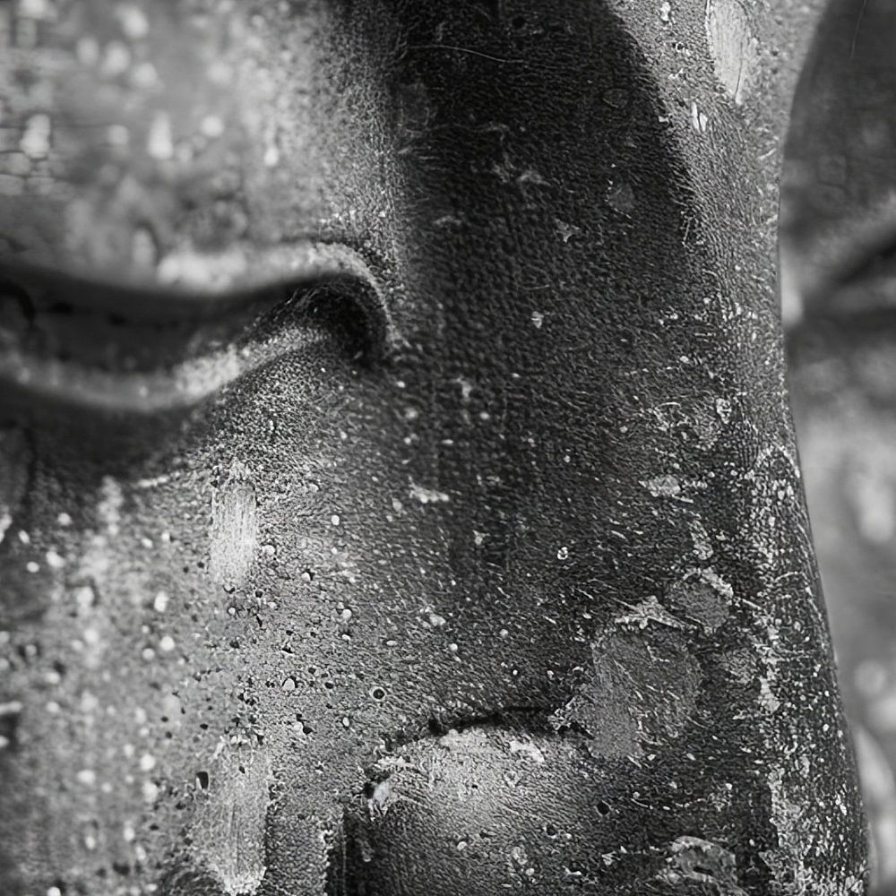 This impressive black and white portrait of a Buddha face radiates calm and inner serenity. The finely crafted details and natural texture of the stone capture the essence of Zen in a timeless way. The contrast between light and shadow enhances the spiritual depth and conveys a quiet, contemplative atmosphere. Perfect for lovers of classical and spiritual art who want to bring a symbol of wisdom and enlightenment into their home.