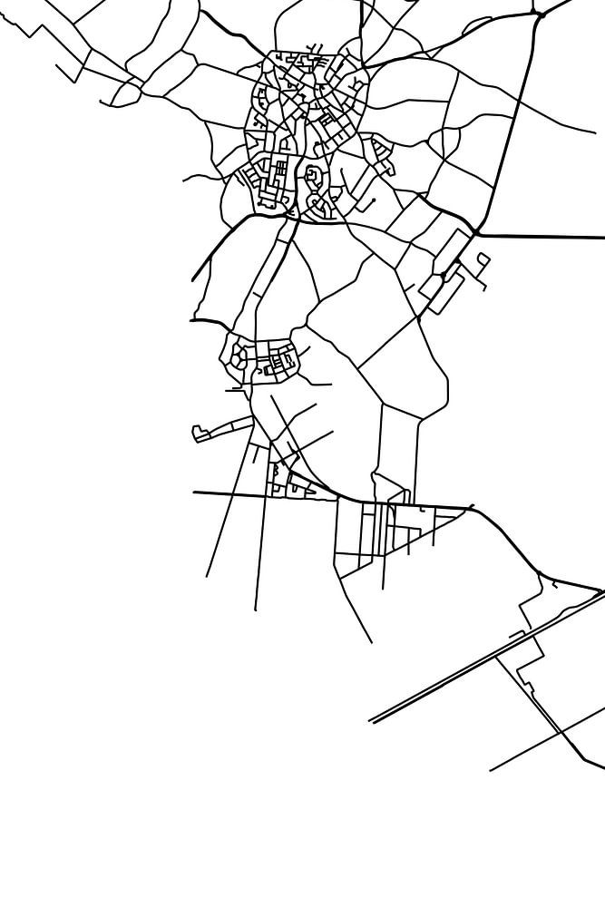 Black and white map, street map or street plan of Budel-Schoot. Budel-Schoot is located in the municipality of Cranendonck, province of North Brabant. On the city map all public roads in Budel-Schoot are included. Furthermore, the map is provided with the coordinates of the center of Budel-Schoot.