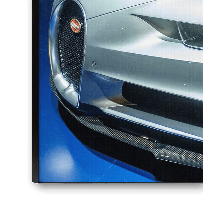 Bugatti Chiron mid-engined W16 engine exclusive hypercar front view. The Bugatti Chiron is fitted with a 8.0 L quad-turbocharged W16 engine producing1,479 hp coupled with a 7-speed dual-clutch transmission.