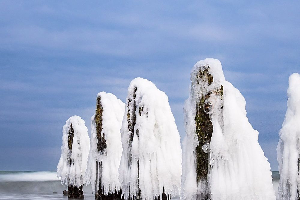 Buhne in winter on the coast of the Baltic Sea near Kühlungsborn. by Rico Ködder