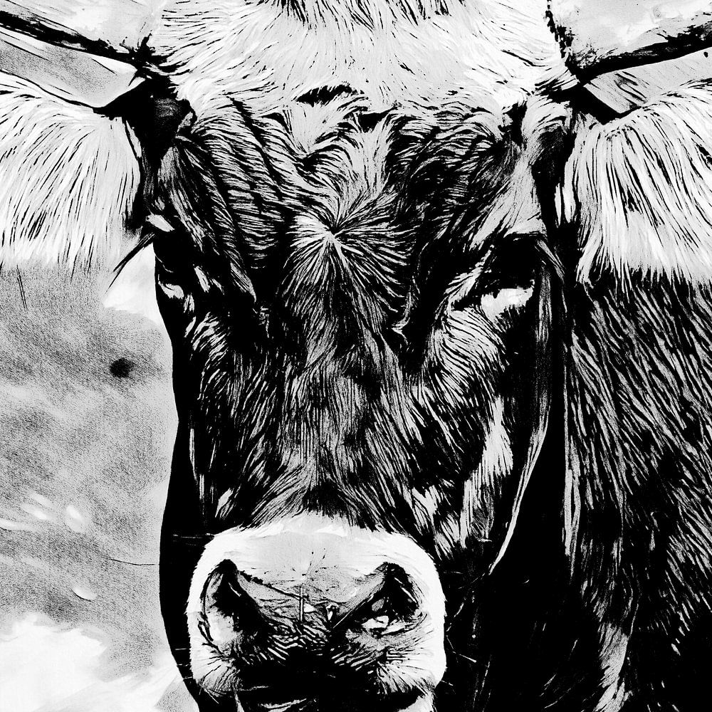 Buy this portrait Bull portrait as line drawing by Andreas Müller on canvas, ArtFrame, poster and wallpaper, printed on demand in high quality.
