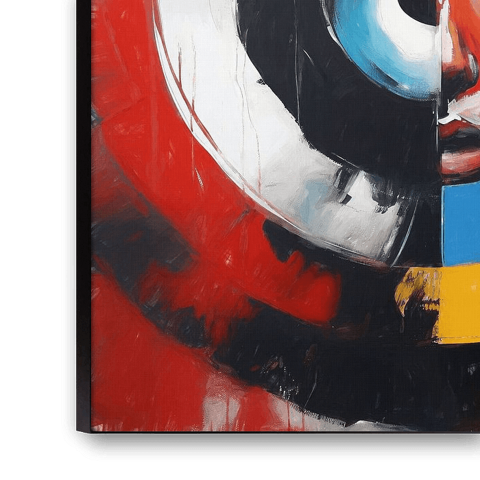 Colourful expressive portrait of a woman's face as a bull's-eye.