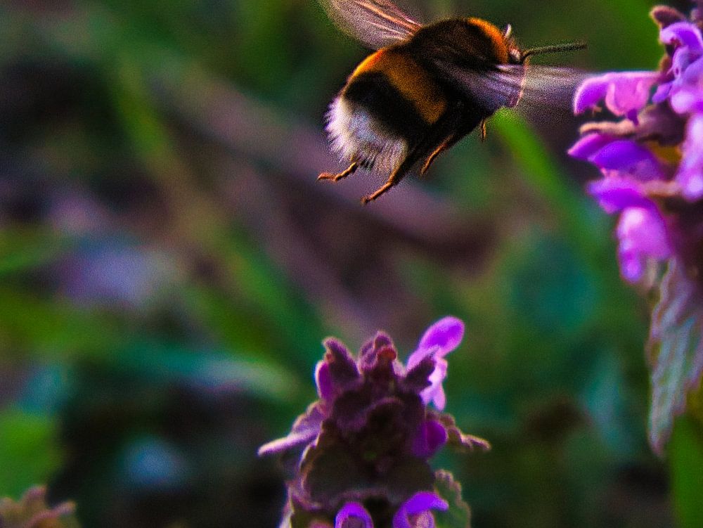 Bumblebee flies on a flower to collect nectar by Martin Köbsch