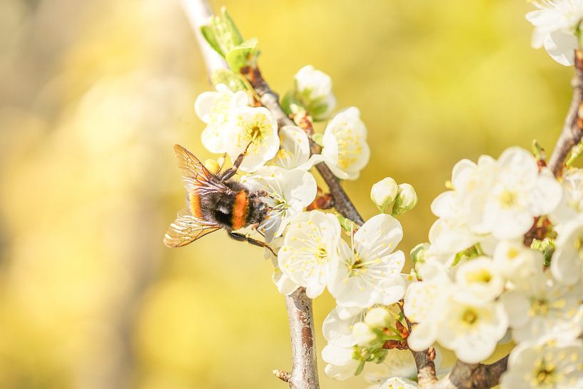 Buy this flower art Bumblebee in blossom by Miranda Geerts Art on canvas, ArtFrame, poster and wallpaper, printed on demand in high quality.