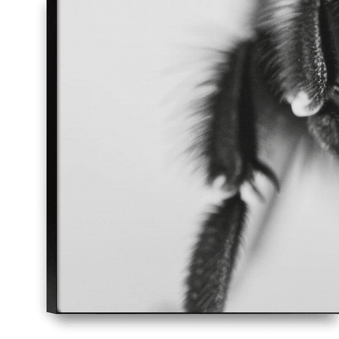This impressive macro shot in black and white shows a bumblebee in breathtaking detail. The minimalist composition and clear contrasts emphasise the complex structure of the eyes, the fine hairs and the filigree antennae. Ideal for nature enthusiasts and macro photography lovers, this artwork brings the hidden beauty of the insect world…