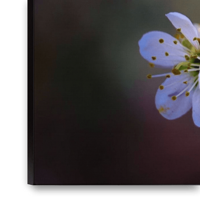 A beautiful group of blossoms from the blackthorn bush, heralding the beginning of spring. The blossoms are grouped on the right side of the photo, with strong bokeh in the background.