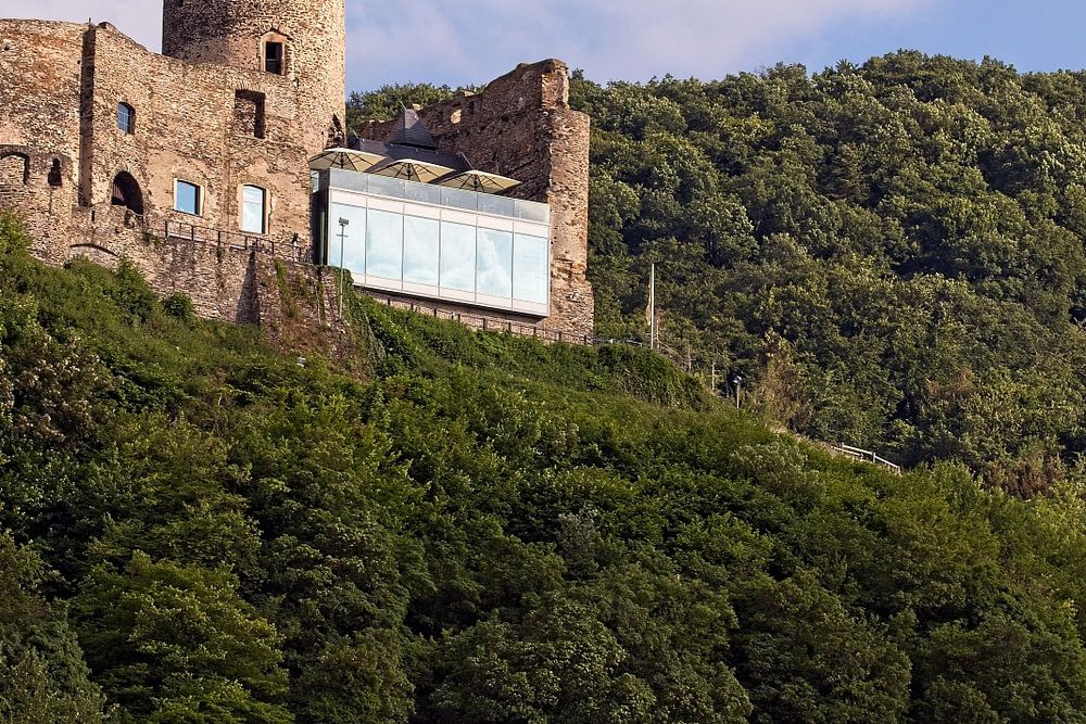 Landshut Castle towers high above the town of Bernkastel-Kues at the Mosel River.