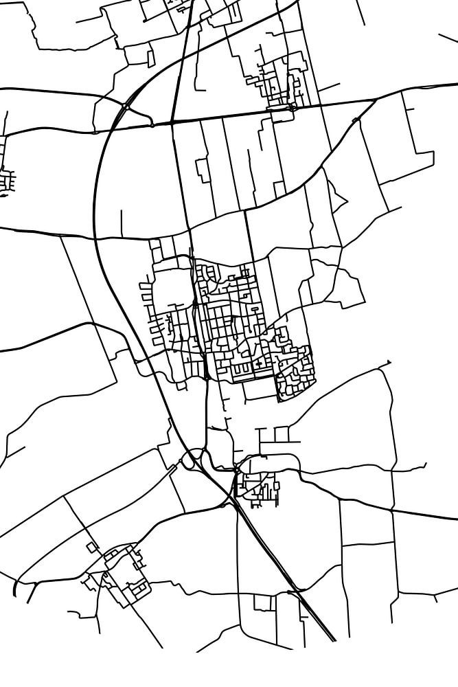 Black and white map, street map or street plan of Burgum. Burgum is located in the municipality of Tytsjerksteradiel, province of Fryslan. On the city map all public roads in Burgum are included. Furthermore, the map is provided with the coordinates of the center of Burgum.