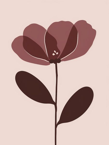 A single stylized flower rises on a slender stem against a soft neutral background. The petals unfold in layered shades of burgundy and dusty rose, creating a calm balance between bold color and minimal form. The composition focuses on clean organic shapes and open space, allowing the flower to stand quietly as the central element.…