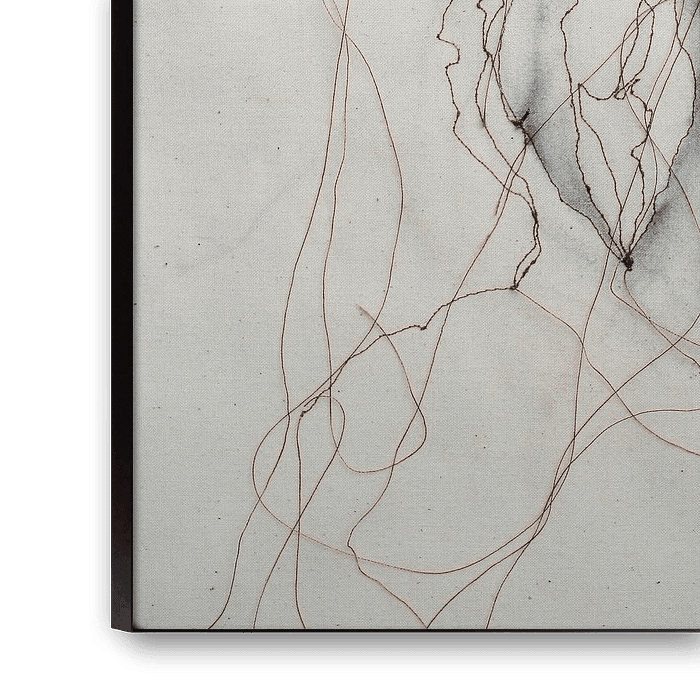 A figurative work of brown thread, charcoal & chalk on canvas. An ode to female sensuality.