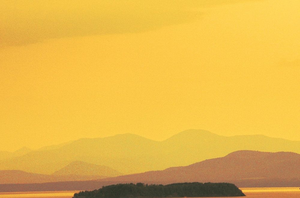 Sunset at Burlington Lake. An atmospheric view of the islets and mountains at Burlington Lake, Vermont. The skies, the colour, the atmosphere are mesmerising.