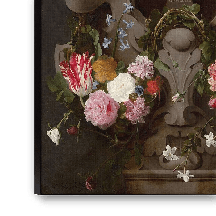 Buy Bust of Constantijn Huygens Surrounded by a Garland of Flowers, Daniel Seghers, Jan Cossiers as a reproduction on canvas, ArtFrame, poster and wallpaper, printed on demand in high quality.