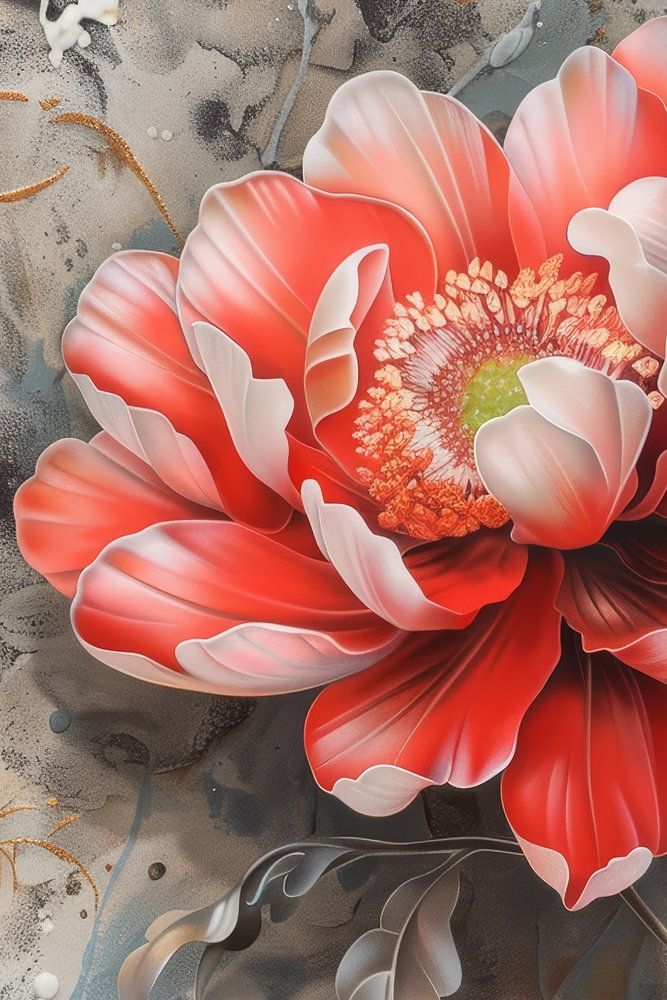 The picture shows a background full of bustle and chaos, yet it is beautiful. Colours dance and lines meander, like an enchanting work of art. But what really stands out is the red flower standing proudly in the foreground. Amidst all this bustle, it radiates calm, like a beacon of beauty. Her petals catch the light and sparkle like precious stones. She seems to be saying: "Look at me, amidst all this spectacle I am the centre of serenity." The flower stands there, imperturbable and majestic. She reminds us that beauty can be found even in the midst of chaos, if we look hard enough.