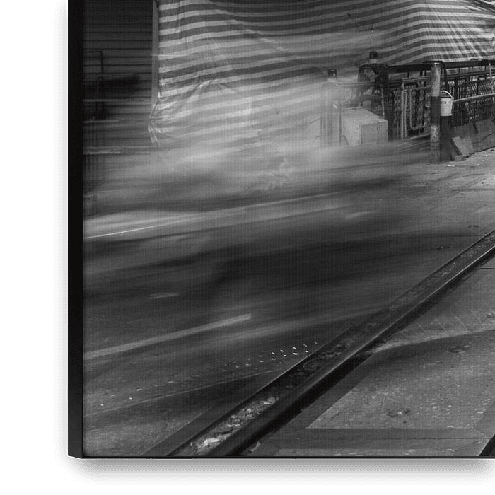 One of the busy streets in Hanoi, Vietnam, in black and white. I used a slower shutter speed here to capture the crowds. A train passes through this street.