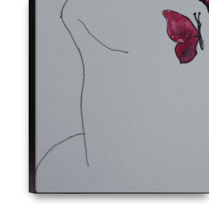 In Butterflies of the Soul, vulnerability and strength come together in a poetic composition. The woman with closed eyes, her face leisurely raised, seems to surrender to the moment. Butterflies in warm shades of red and orange dance lightly around her, as symbols of inner freedom, transformation and soul…
