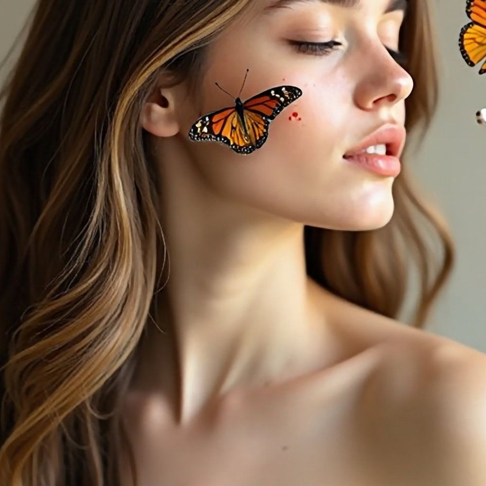 This painting exudes softness and elegance, with a woman surrounded by subtle butterflies that add light and movement to the image. The delicate colours and playful butterflies create a dreamy and serene look, perfect for an interior that embraces nature, freedom and sophistication.