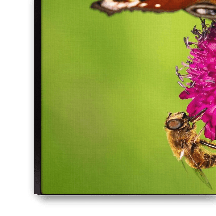 Buy this flower art Butterfly and bee on flower by Jeroen Berendse on canvas, ArtFrame, poster and wallpaper, printed on demand in high quality.