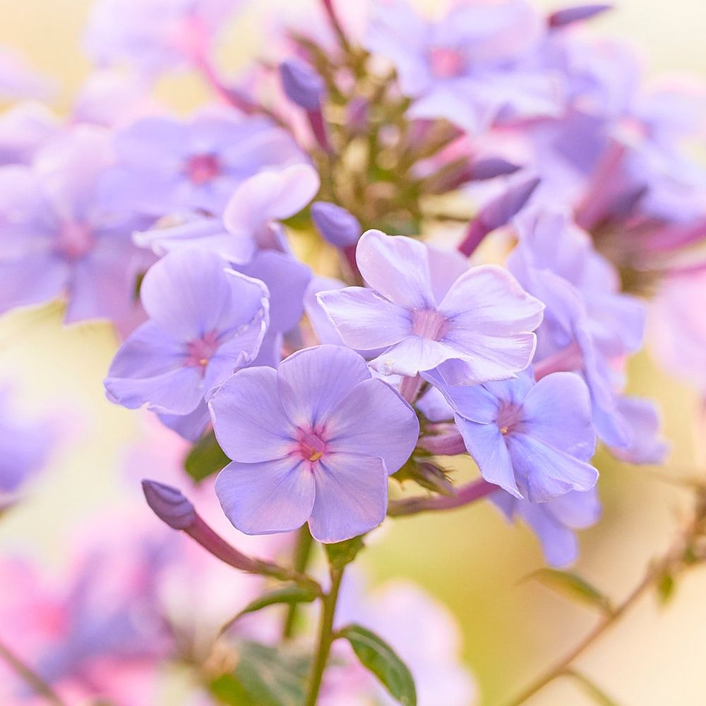 The Phlox, also known as flame flower or phlox, is a well-known fragrant garden plant in a variety of colors. These blue/purple flowers were photographed at the end of a warm summer day with a lovely golden glow shining over the flowers and the garden. They are small, endearingly beautiful flowers. This photo is part of a series of this flower. The pastel color of the flower and the summer heat give the photo a character all its own.