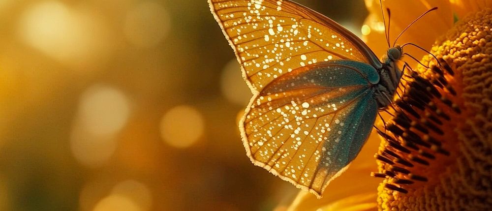 The morning mood shimmers in soft gold and yellow tones, while a delicate butterfly rests on the radiant sunflower. The playful lightness of this sight brings freshness and joy to any room. Ideal for the living room, where nature enters the home and fills every day with a touch of elegance.