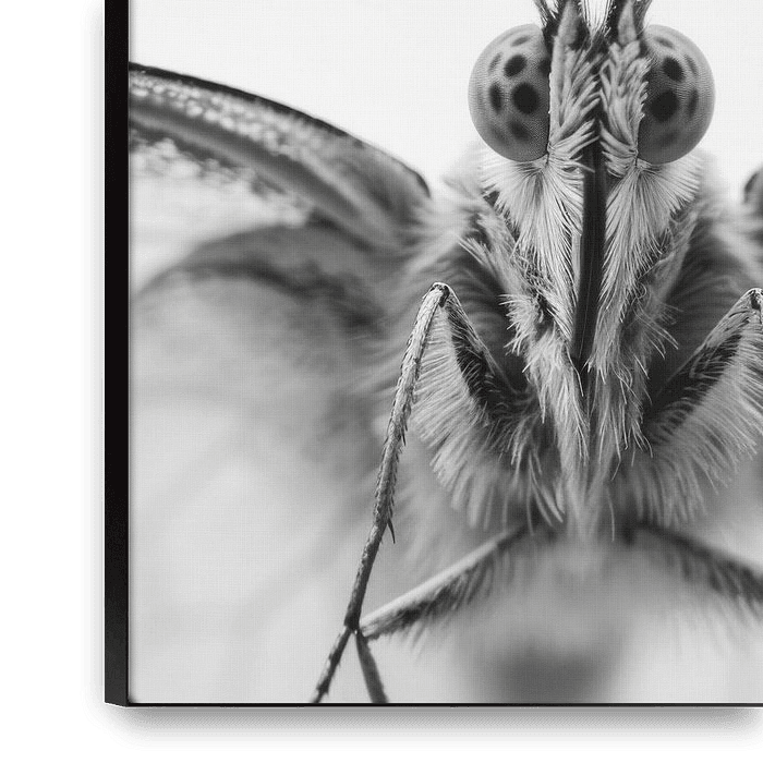 This artistic black and white portrait of a butterfly perfectly captures the delicate grace and beauty of this insect. The delicate wings and fine details are impressively emphasised in this minimalist composition. A fascinating work of art that brings elegance and closeness to nature into your living space and is ideal for lovers of…