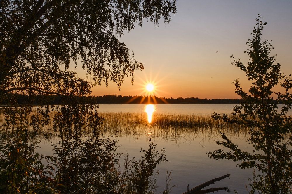 Sunset at the Hirvajãrvi in the north of Sweden.