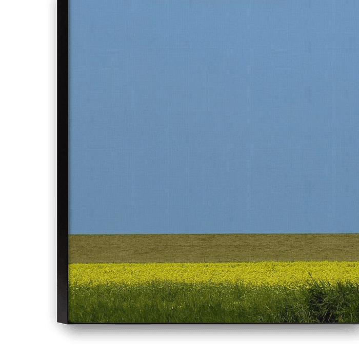 By de Seedyk is a photo I made between Blije and Ferwert. Villages at the Wadden Sea coast in Northeast Friesland. A colourful landscape with flowering rapeseed and a clear blue sky with a few clouds. Simmer yn Fryslan. A beautiful summer day in Friesland.