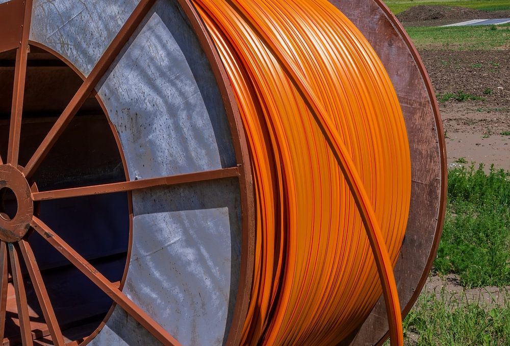 Cable drum with orange fibre optic cable by Manfred Angermayr