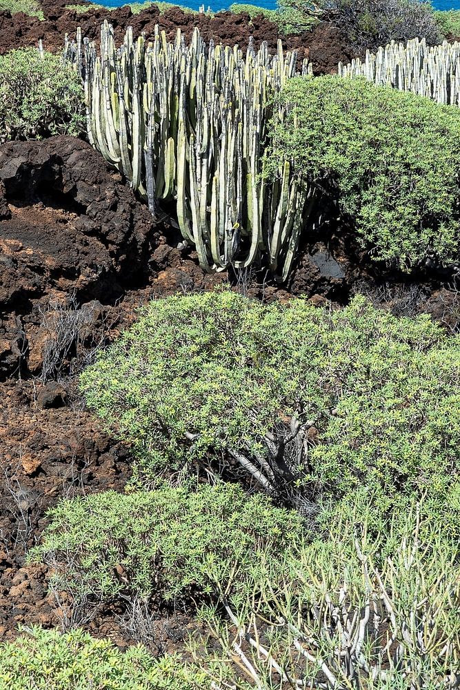Malpaís de Güímar in Tenerife is an extraordinary nature reserve of great ecological value, which has had protected status since 1987. This is a unique volcanic landscape stretching from Montaña Grande to the coast. Thanks to its mild climate, the area is home to a great wealth of endemic plant and tree species. There are numerous fields of Canary and other varieties of spurge here.