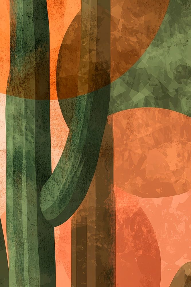 A harmonious interplay of bright earthy colours and geometric shapes frames the bold cactus. The soft, organic lines give the room a modern touch and create a calming atmosphere. Perfect for the living room, this work of art brings a breath of fresh air and natural elegance to your four walls.